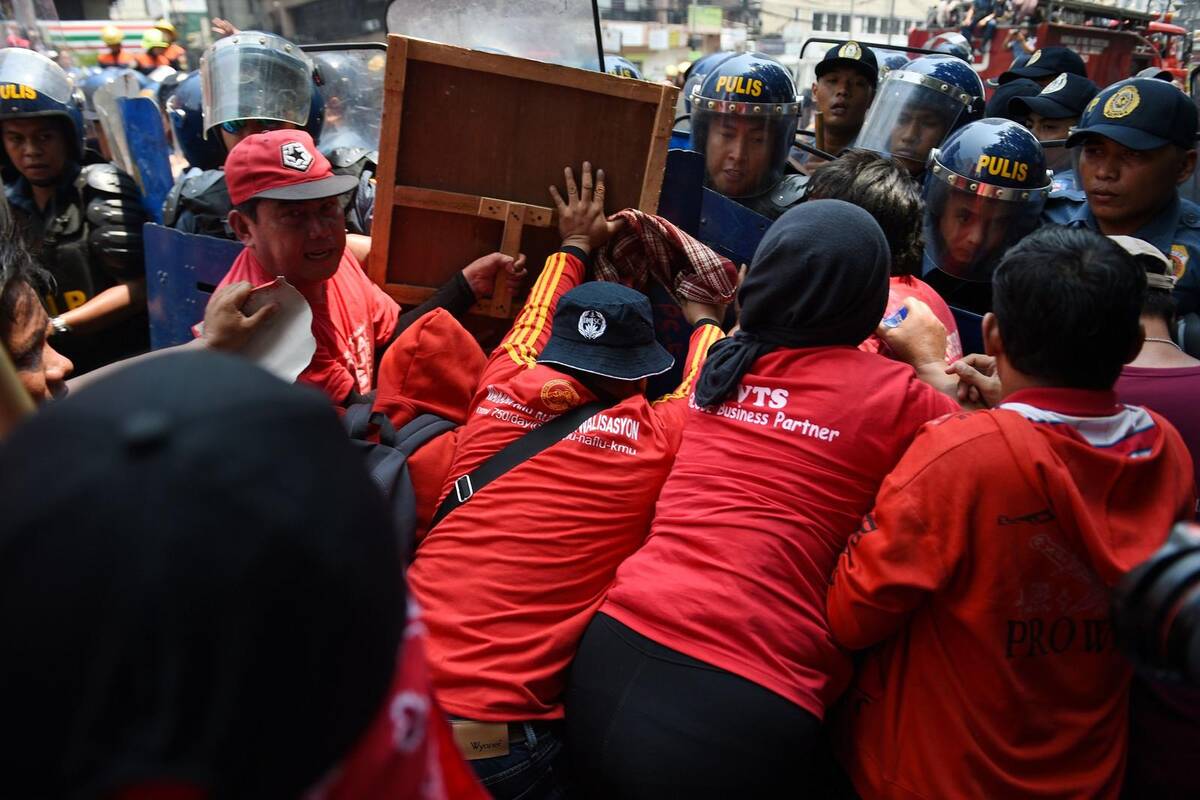 Keli tūkstančiai kairiojo sparno aktyvistų ir darbininkų dalyvavo triukšmingose eitynėse. Jie reikalavo pakelti atlyginimus ir atsisakyti laikinų darbų sutarčių, kurios atima iš darbininkų daugelį socialinių garantijų. Tvyrant karščiams Maniloje susirinkę demonstrantai protestavo ir prieš savavališkas žudynes per prezidento Rodrigo Duterte (Rodrigo Dutertės) karą su narkotikais.