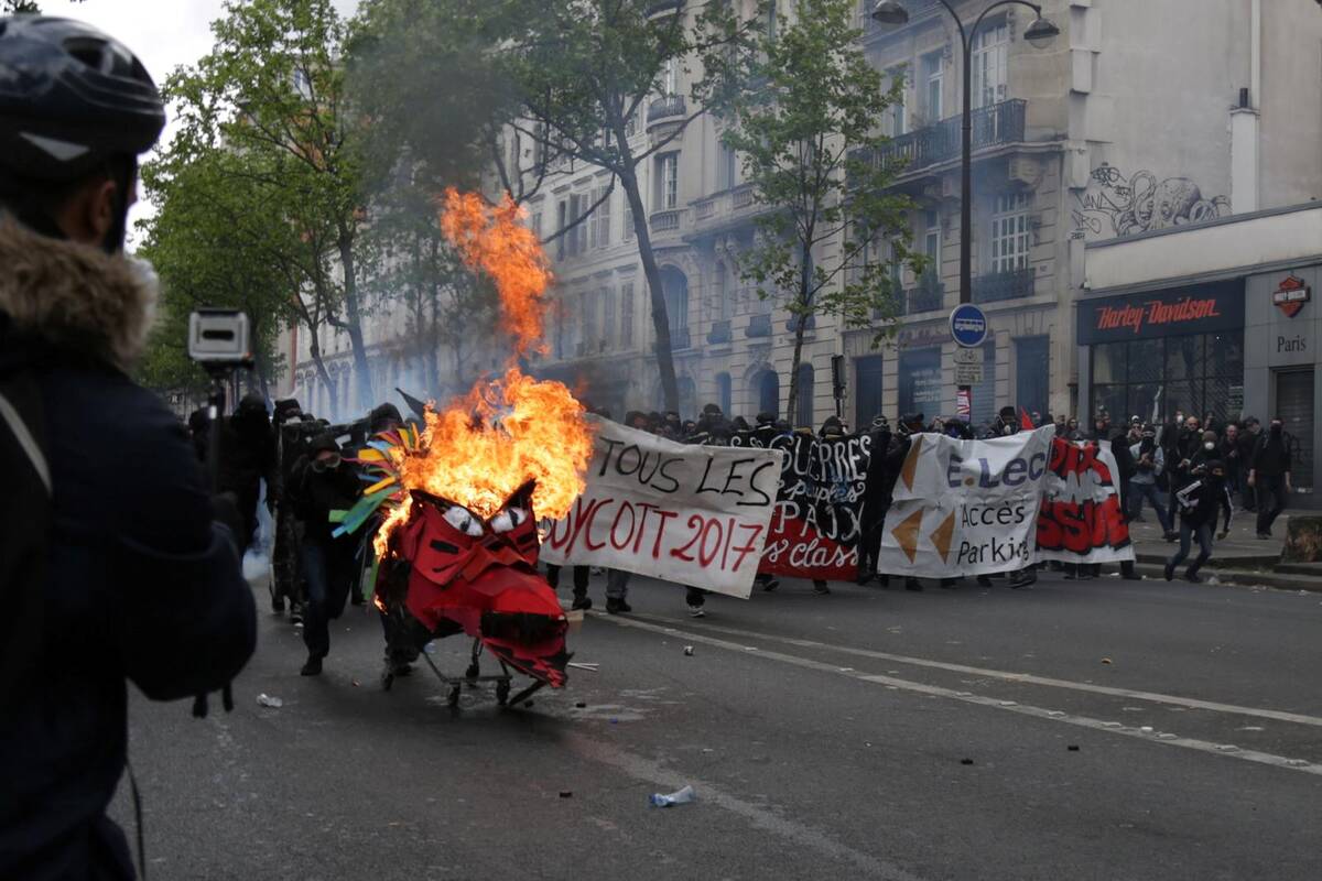 Per kasmetinę eiseną, skirtą darbininkų teisėms pažymėti, šiais metais buvo ir raginimų neleisti kraštutinių dešiniųjų kandidatei į prezidento postą Marine Le Pen (Marin Le Pen) laimėti antrąjį turą ateinantį sekmadienį.