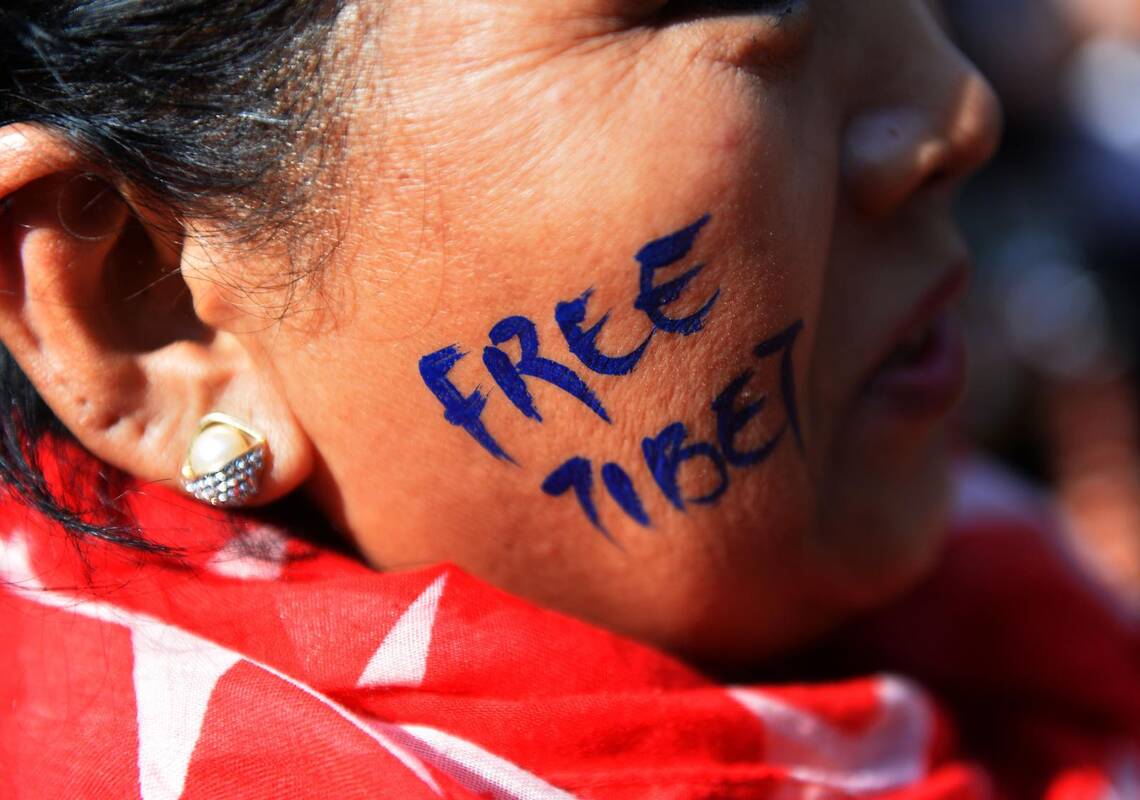 Aktyvistai, tarp jų dėvintys juodas kaukes, apnuoginę krūtines ir ant skruostų arba kūnų išsipiešę Tibeto vėliavas, skandavo šūkius už savo regiono nepriklausomybę ir išskleidė transparantus su Kiniją smerkiančiais užrašais. Policija didžiąją dalį jų sulaikė.