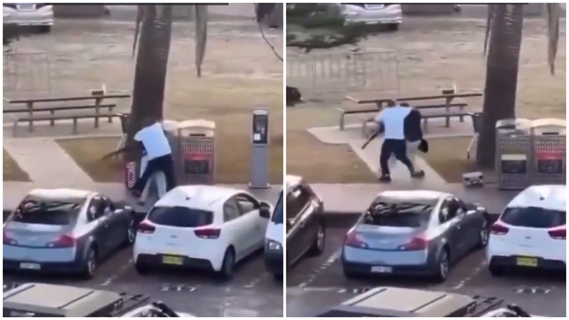 Vaizdo įraše matyti, kaip policija sulaiko ilgaplaukį berniuką juodais marškinėliais, akiniais ir kepuraite su JAV vėliavos motyvu.