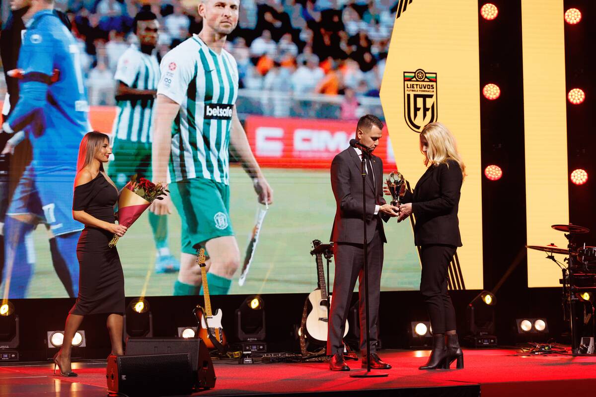 Tiesa, pats futbolininkas su Vilniaus komanda yra išvykęs į treniruočių stovyklą Turkijoje, tad apdovanojimų ceremonijoje dalyvauti negalėjo – vietoje jo, apdovanojimą ant scenos atsiėmė jo šeima.