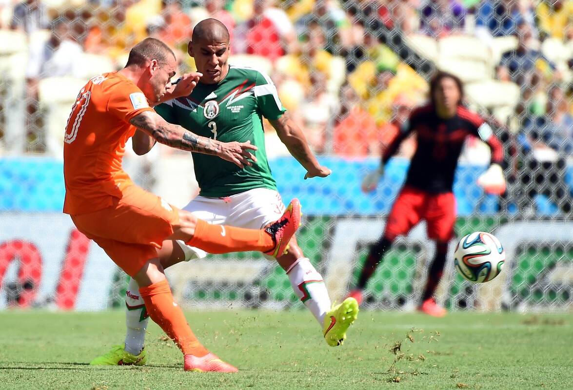 17 minutę Meksikos futbolininkai turėjo gerą galimybę pelnyti įvartį. Po Hectoro Herreros smūgio kamuolys praskriejo visiškai šalia Olandijos komandos virpsto.
