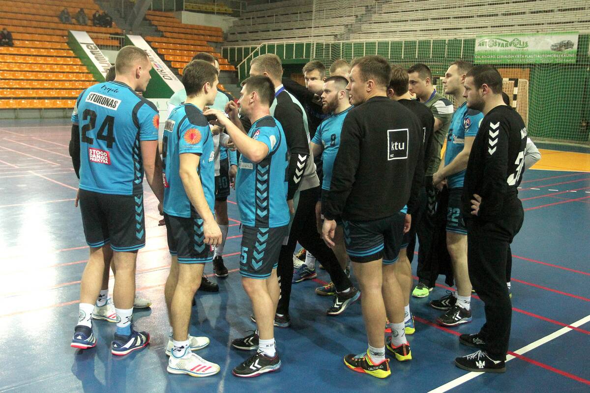 Kitame ture kauniečių laukia susitikimas su „Vilniaus“ komanda, kuri čempionatą pradėjo nusileisdama Kauno „Ąžuolo-KTU“ klubui. Nuolat savo sąlygas diktavę kauniečiai pirmavo, tačiau iki pertraukos smarkiau neatitrūko 19:16. Po pertraukos vilniečiai ėmė artėti ir skirtumą nukirpo iki minimalaus 24:25. Vis dėlto svečiai sukruto, laimėjo atkarpą 4:0 ir tapo nebepavejami. Nugalėtojams įvarčius pelnė: Arminas Stankūnas – 9, Karolis Jankauskas – 7, Vilius Juozaitis – 6, Aurimas Balčiūnas – 5, Lukas Sutkus – 4, Martynas Stumbra ir Mantas Sturonas – po 1. Vilniečiams daugiausia įvarčių įmetė Vaidas Drevinskas, Martynas Žala ir Domantas Raudonius – po 6, Martynas Lapinskas – 5. Vienintelis šį sezoną lygos legionierius Federico German Jaime iš Argentinos pasižymėjo 1 įvarčiu.