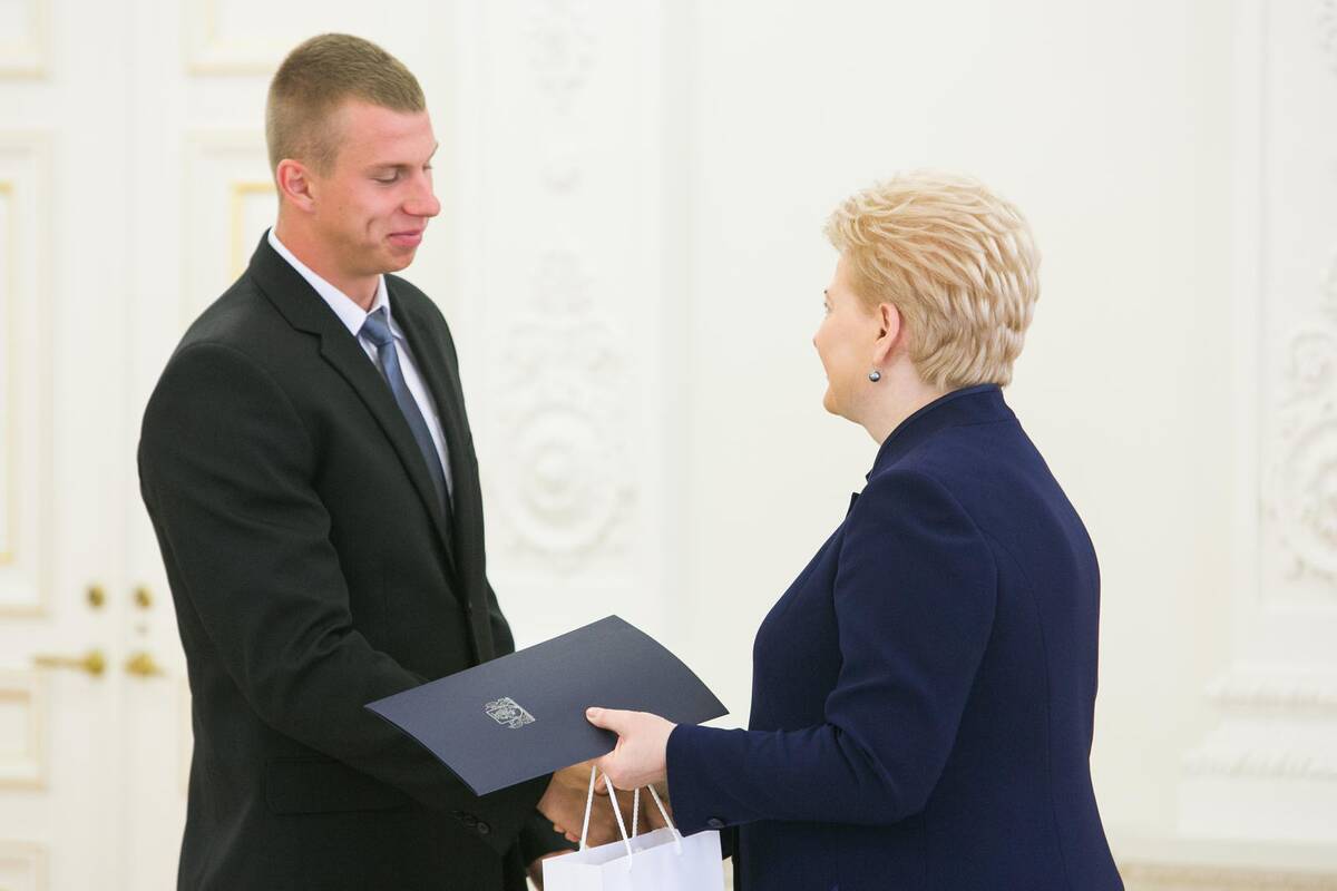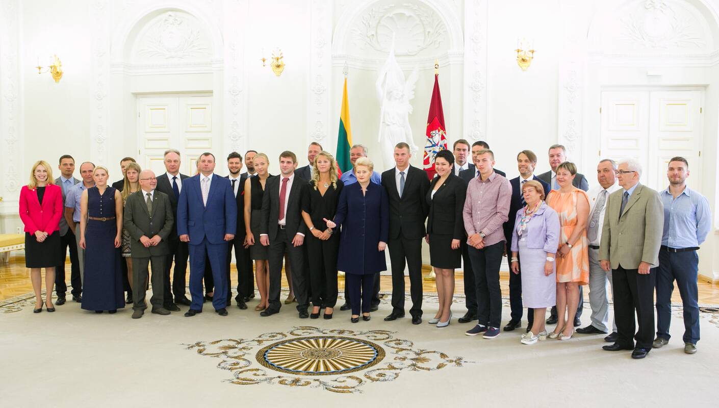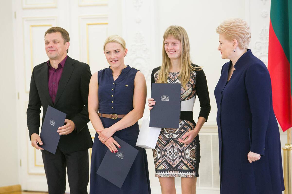 Prezidentė Dalia Grybauskaitė Prezidentūroje ketvirtadienį padėkos raštais apdovanojo medalius Europos žaidynėse Baku, Azerbaidžane, iškovojusius Lietuvos sportininkus, jų trenerius ir gydytojus.
