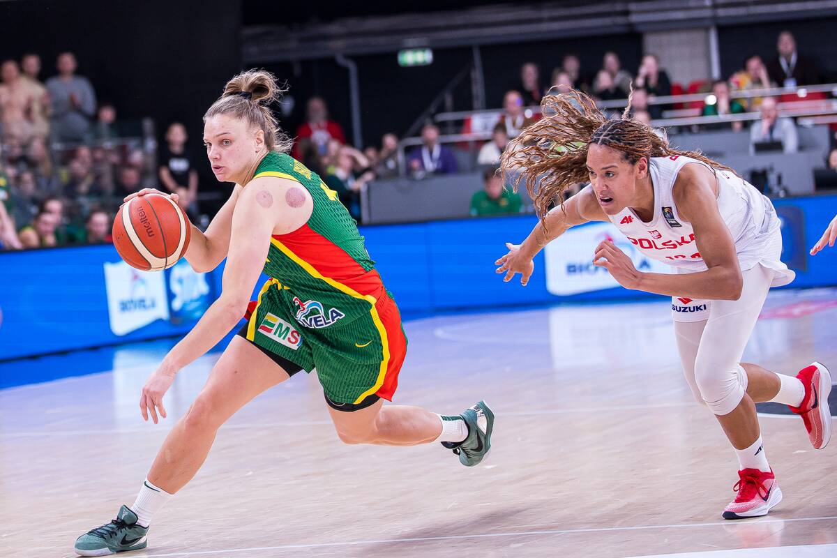 Lyderės: J. Jocytės akistata – su Lenkijai atstovaujančia afrikiečių kraujo turinčia amerikiete S. Mavunga. / ltu.basketball nuotr.