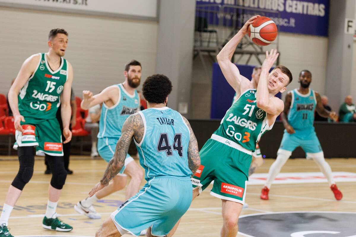 Ketvirtojo kėlinio starte „Žalgiris“ grįžo prie dviženklės persvaros, o „vilkams“ iš L. Lekavičiaus nesportinės pražangos pavyko išspausti tik tašką – 52:62. Svečių situaciją dar labiau komplikavo L. Biručio blokas J. Taylorui ir greiti Rolando Šmito taškai. Prie dviženklio skirtumas dar kartą grįžo po latvio baudų metimų (69:59), bet Eigirdas Žukauskas šį sumažino iki keturių taškų (65:69). Vis dėlto rungtynes uždarė Edgaro Ulanovo baudų metimai.