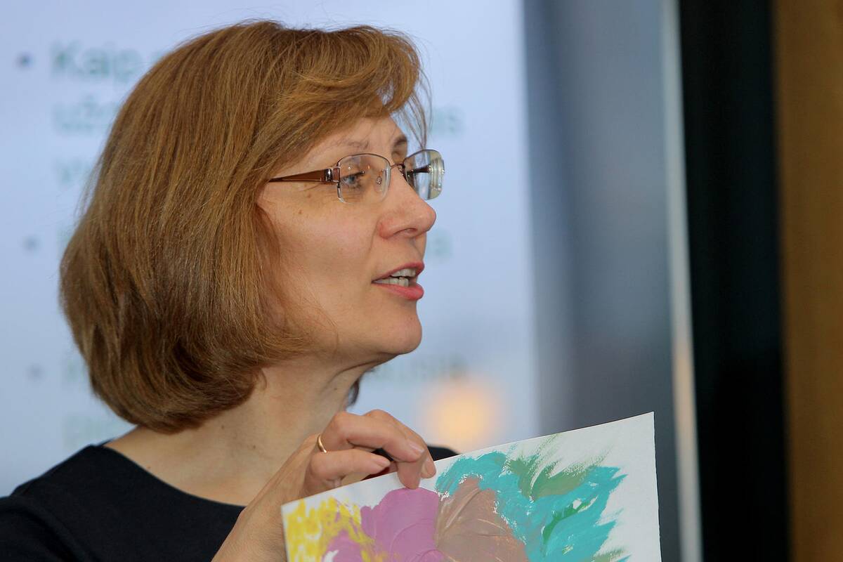 ,,Dailės terapija skiriama ir sveikiems žmonėms, norintiems save pažinti, ir vaikams su psichine bei fizine negalia, – aiškino meno terapijos ir geštaltpsichologijos konsultantė Irena Bulotienė. – Čia susirinko sveiki žmonės, kurie nori atrasti vidinius resursus, įvardinti tai, ko nežinome, analizuoti save, nes piešinys – mūsų pasąmonė."