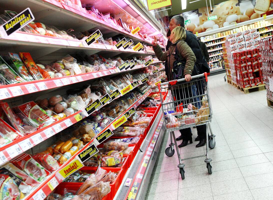 Mergina į krepšį dėjo tuos produktus, kuriuos, buvo įsitikinusi, tikrai suvartos artimiausiu metu. Kepalėlis itališkos duonos "Ciabatta", spurgos su uogienės įdaru, 250 g sūrio pakuotė, 200 g sviesto, pora konservų indelių su tunu, dviejų litrų aliejaus butelis, liežuvio slėgtainis, pieniškų dešrelių pakuotė, keturios skardinės lenkiško alaus, 750 g makaronų pakuotė, 500 ml dušo želė. Visi šie pirkiniai atsiėjo 52,91 zloto. Mokant banko kortele, bankas perskaičiavo valiutų skirtumą ne tokiu pirkėjui naudingu kursu, tačiau, įvertinus grynųjų pinigų keitimo įkainius ir sugaištą laiką, klaipėdietės tai visai nenuliūdino.