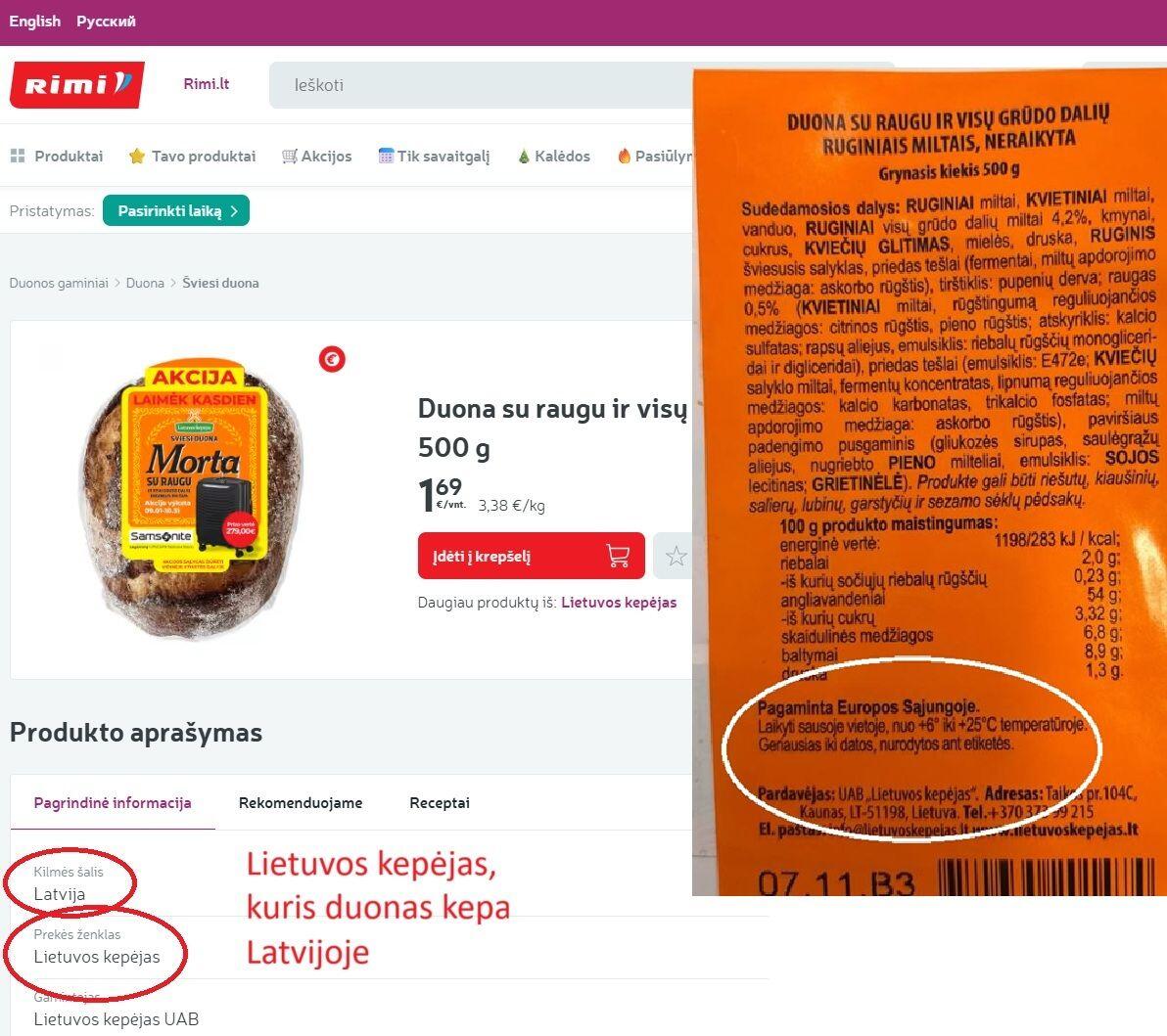 Jam antrino į redakciją lapkričio mėnesį kreipęsis kitas skaitytojas: „Po to, kai praėjusiais metais Kaune buvo uždaryta „Gardėsio“ duonos gamykla, pradėjau pirkti duoną „Bočių“ ir „Morta“, kurių gamintojas yra bendrovė „Lietuvos kepėjas“. Maniau, kad pirkau Lietuvoje gaminamą duoną, tačiau vėliau pastebėjau, kad „Lietuvos kepėjo“ gaminama duona yra kepama ne Lietuvoje, o Latvijoje. Tai parašyta ant pakuotės, bet mažomis raidėmis. Ar tai nėra pirkėjų klaidinimas, nes gamintojo pavadinimas „Lietuvos kepėjas“ leidžia suprasti, kad duona yra gaminama Lietuvoje?“ – klausė skaitytojas, turėjęs pastabų ir dėl ruginės duonos pavadinimo atitikimo jos sudėčiai.