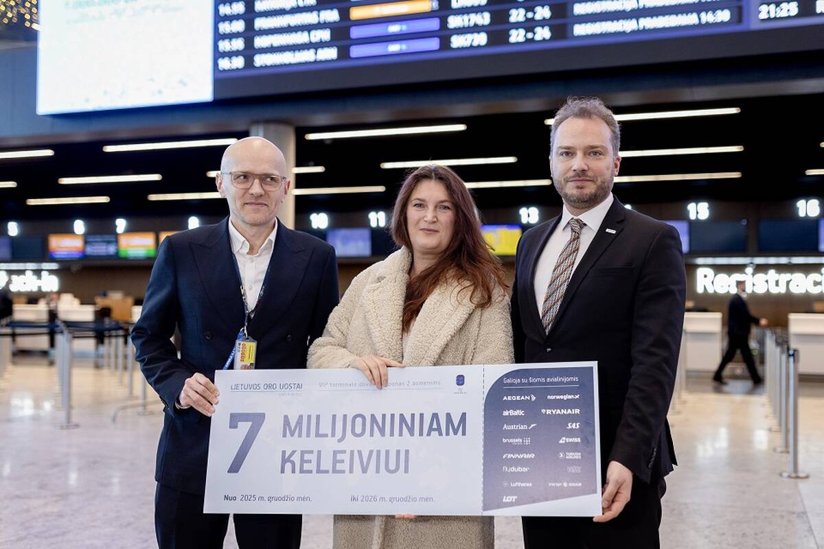 Jis ir S. Bartkus antradienį pasveikino septynmilijoninę keleivę Vilniaus oro uosto išvykimo terminale.
