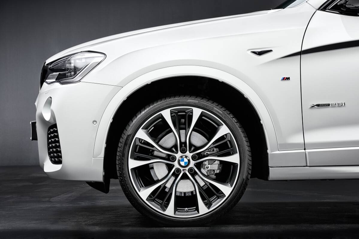 „M Performance“ serijos išorės dizaino elementų gausoje galima išskirti tik BMW automobiliams būdingas priekines radiatoriaus groteles ir išorinių veidrodėlių gaubtus. Specialiai BMW „X3“ ir „X4“ automobiliams sukurti nauji itin lengvo lydinio ratlankiai. Jie ne tik suteikia automobiliui išskirtinę išvaizdą, bet ir naudojant šiuos ratlankius žymiai sumažėja bendra automobilio masė, todėl padidėja jo manevringumas bei vairo tikslumas.