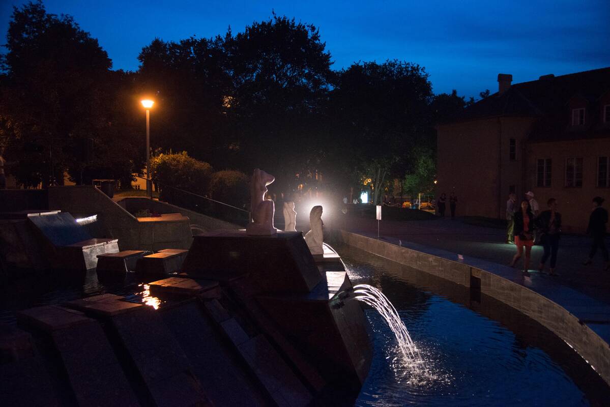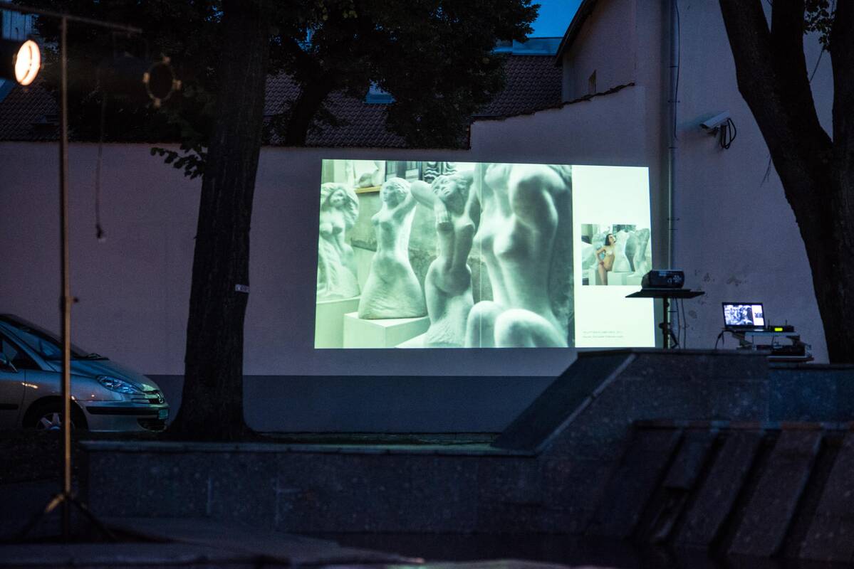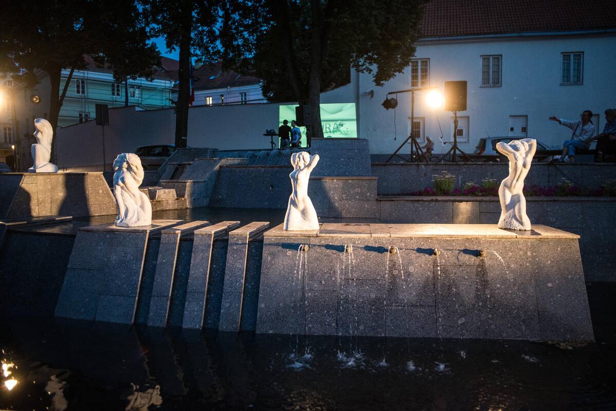 Ruzgo kūriniai fontaną puoš tik dešimt dienų. Nuo šeštadienio vakaro, kas antrą dieną, ant šalia esančio pastato sienos bus rodoma ir menininko darbų retrospektyva.