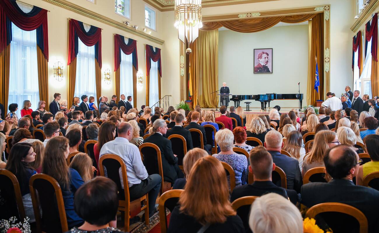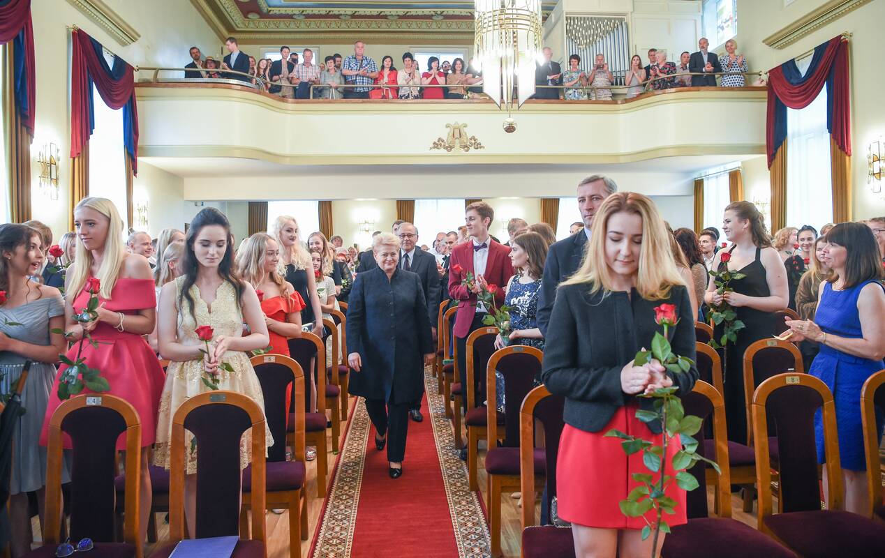 Teikdama brandos atestatus šalies vadovė pažymėjo, kad abiturientų pasirinktas kelias – nelengvas, reikalaujantis begalinio darbo ir tobulėjimo, tačiau kupinas žiūrovų ir klausytojų pripažinimo bei dėkingumo. Prezidentė palinkėjo kiekvienam absolventui surasti savo vietą meno pasaulyje ir visada siekti kūrybinių aukštumų.