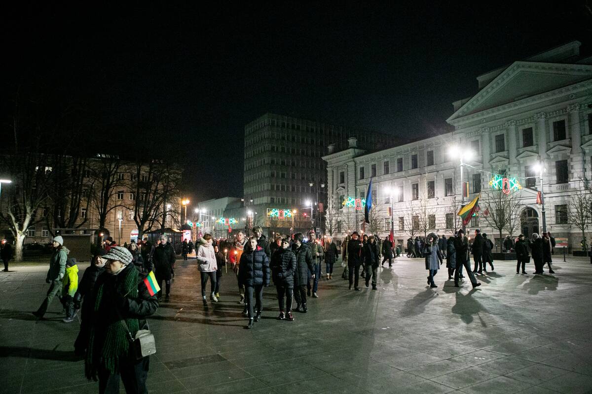 Eisenos dalyvių tikslas – Lukiškių aikštė. „Galiu pasakyti, kad emocijos – puikios, fantastiškos. Atrodo, kad tūkstančio liepsnelių jūra užpildė Vilniaus senamiestį“, – situaciją komentavo žurnalistė.
