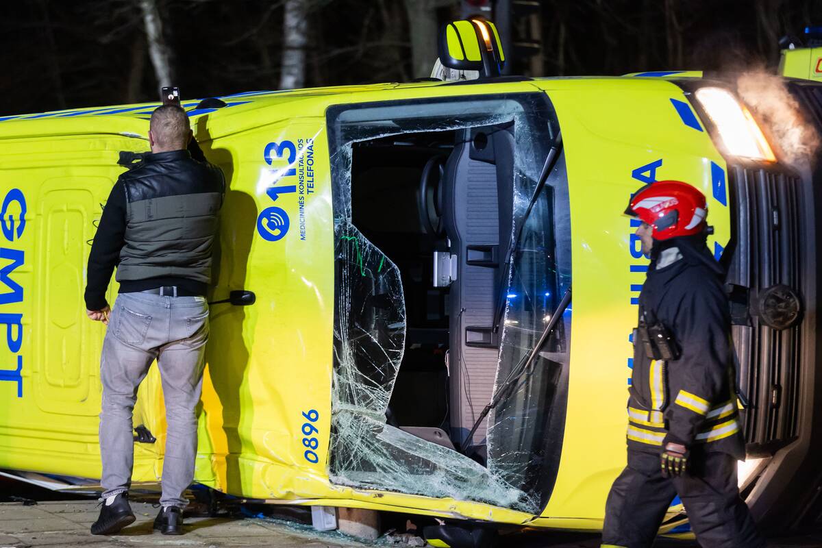 Greitosios pagalbos automobilis apvirto susidūręs su „Audi“ transporto priemone.