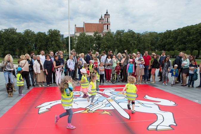 Rekordinio dydžio Vyčio dėlionė nuklojo Lukiškių aikštę