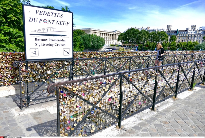 Įsimylėję turistai kelia pavojų Paryžiaus tiltams